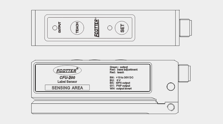 CFU-200標(biāo)簽傳感器的平衡基準(zhǔn)指示燈越亮,它的平衡度越高,工作狀態(tài)越理想。靈敏度指示燈越亮傳感器靈敏度越高,越暗靈敏度越低。