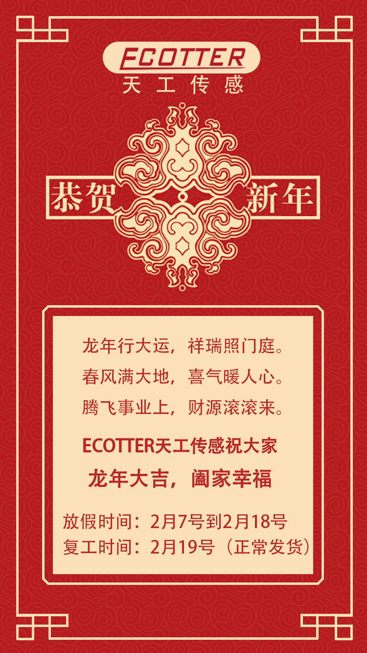 【恭賀新春】ECOTTER春節(jié)放假時(shí)間2月7號(hào)至18號(hào),預(yù)祝大家新春快樂(lè)!