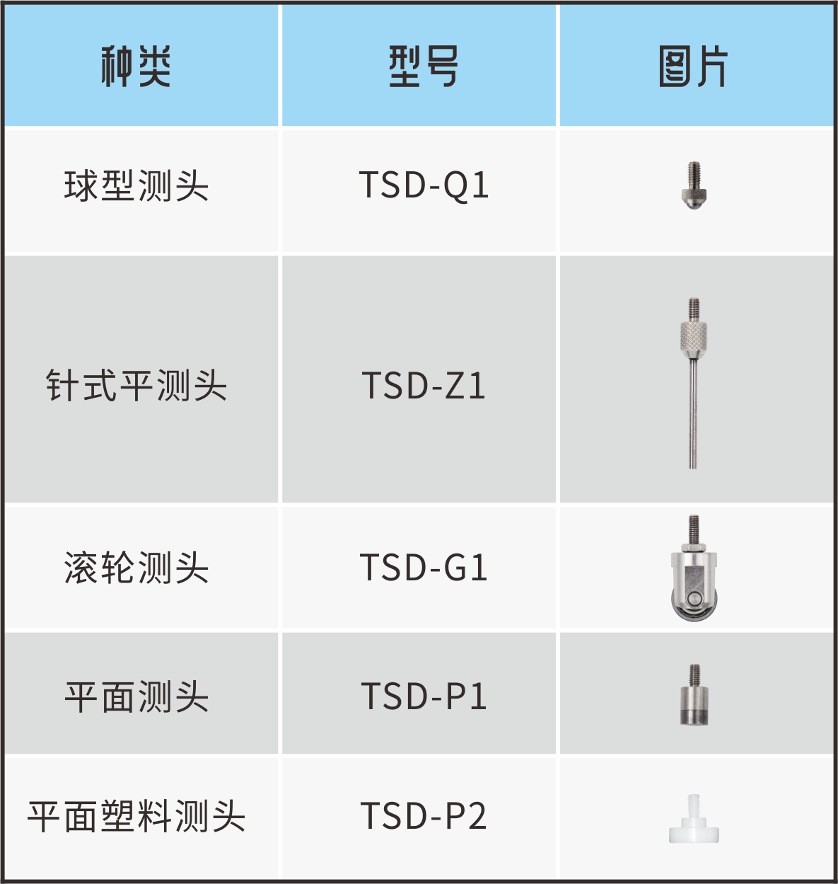 我們出廠標(biāo)配的球型測(cè)頭,本身硬度比較高,接觸金屬等表面可以輕松應(yīng)對(duì),而探針式測(cè)頭適合對(duì)小孔進(jìn)行探測(cè),滾輪測(cè)頭適合接觸面移動(dòng)的測(cè)量場(chǎng)景,平測(cè)頭適用對(duì)面的最高點(diǎn)進(jìn)行測(cè)量,塑料測(cè)頭適用于對(duì)玻璃等易碎品進(jìn)行測(cè)量。