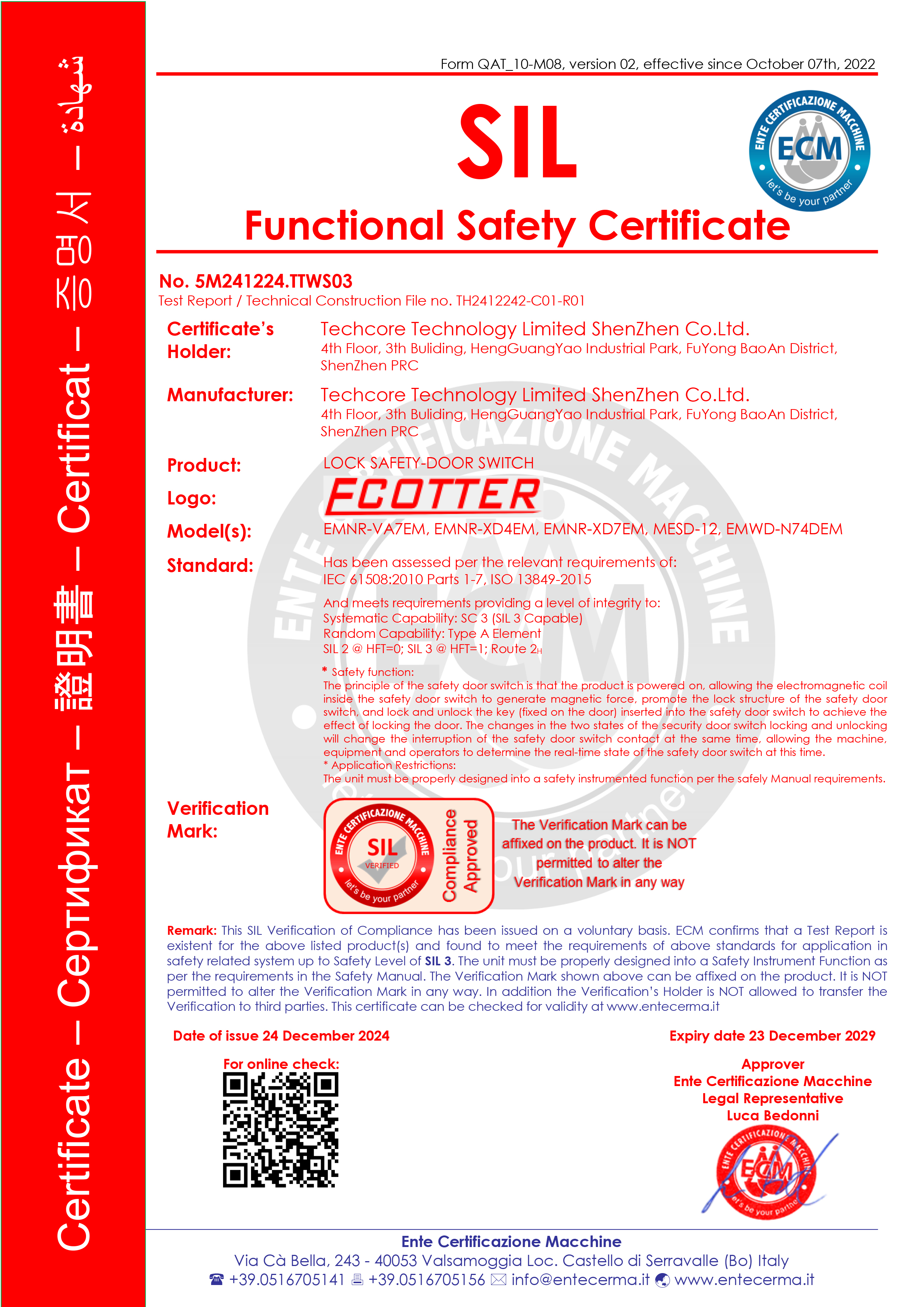 ECOTTER 安全門鎖 強(qiáng)制鎖定力可達(dá)1300N,擁有防火阻燃材料做成的機(jī)身,銀鍍金防燒蝕的觸點(diǎn),機(jī)械壽命百萬次,電氣壽命數(shù)十萬次,有SIL安全等級(jí)認(rèn)證。