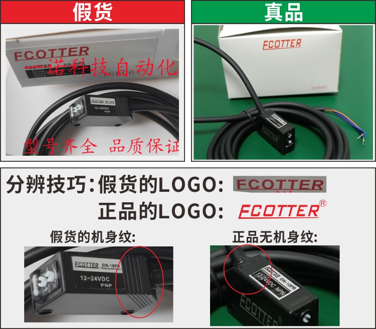 ECOTTER天工傳感在工業(yè)自動化行業(yè)有二十多年的品牌歷史,我們通過優(yōu)質(zhì)的技術(shù)服務(wù)和選型經(jīng)驗(yàn)獲得客戶的信任。隨意盜用我們的品牌,提供劣質(zhì)產(chǎn)品和服務(wù)給客戶,嚴(yán)重侵害客戶利益,嚴(yán)重傷害ECOTTER天工傳感品牌信譽(yù)。正告那些制假售價(jià)企業(yè)及個(gè)人遵守社會公序良德,遵紀(jì)守法,良性競爭,立即停止侵權(quán)。請客戶選購時(shí)選擇官方渠道,辨明正品,感謝大家配合及支持!
