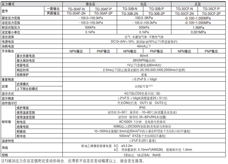 這個系列的壓力表可分為混合壓TG-30AF、正壓表TG-30CF、負壓表TG-30BF三個類型。