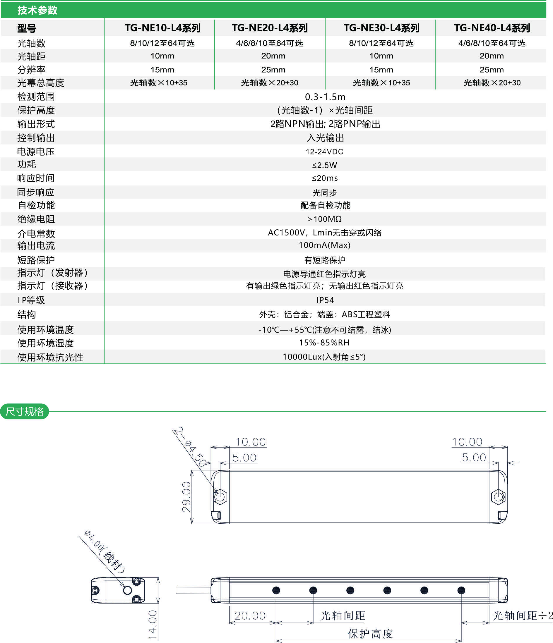 四級(jí)安全光幕超薄型TG-NE-L4側(cè)面對射