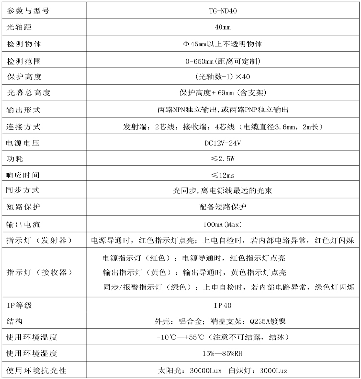 首頁 > 產(chǎn)品中心 >>傳 感 器 >> 安全光幕 >> 四級安全光幕超薄型TG-ND-40系列