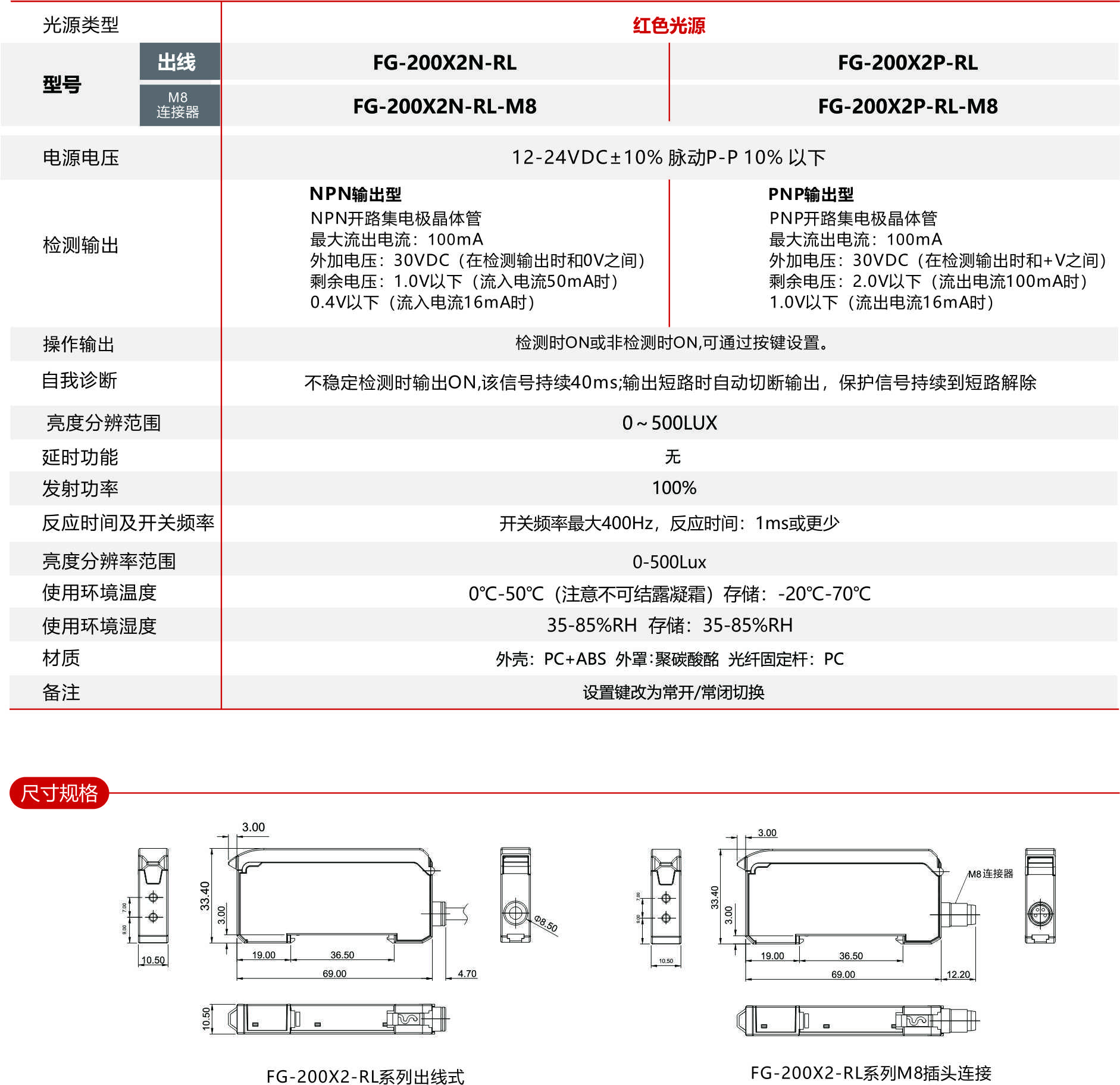 外來(lái)光源檢測(cè)光纖放大器FG-200X2-RL