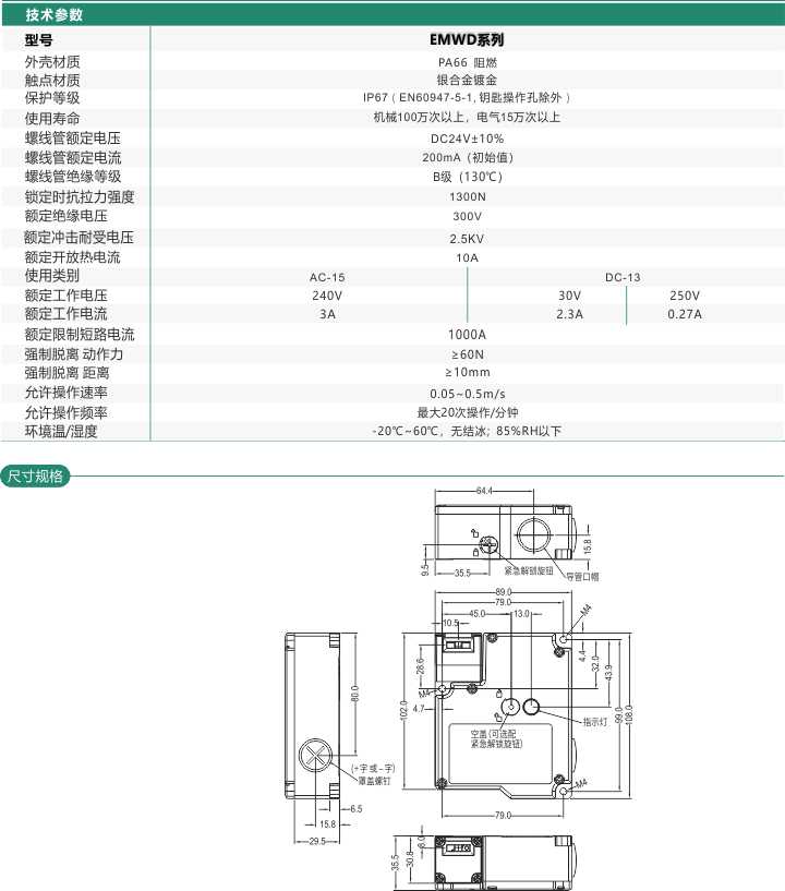 安全門開關 電磁式 六組觸點 EMWD 系列