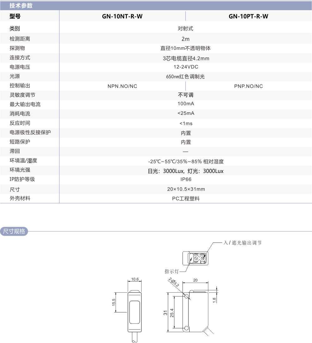 擴散光對射光電開關GN-10T-R-W
